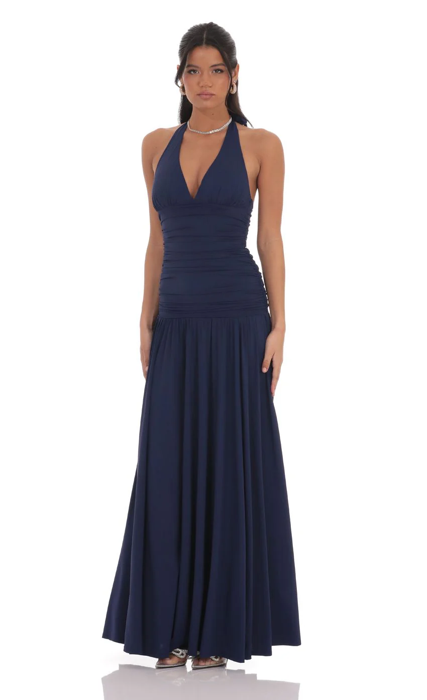 Sequin Cowl Neck Dress in Blue