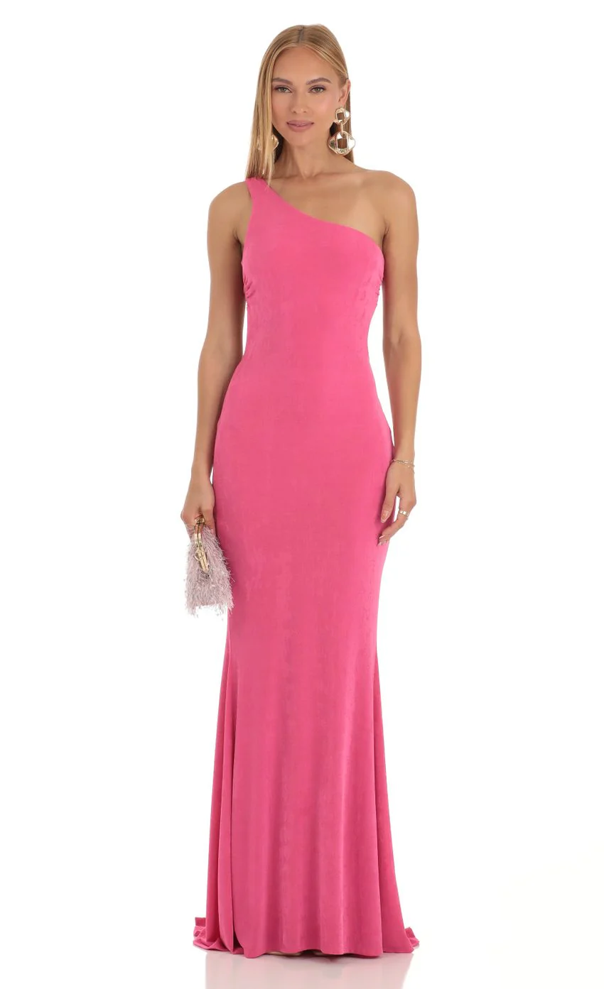 One Shoulder Maxi Dress in Pink