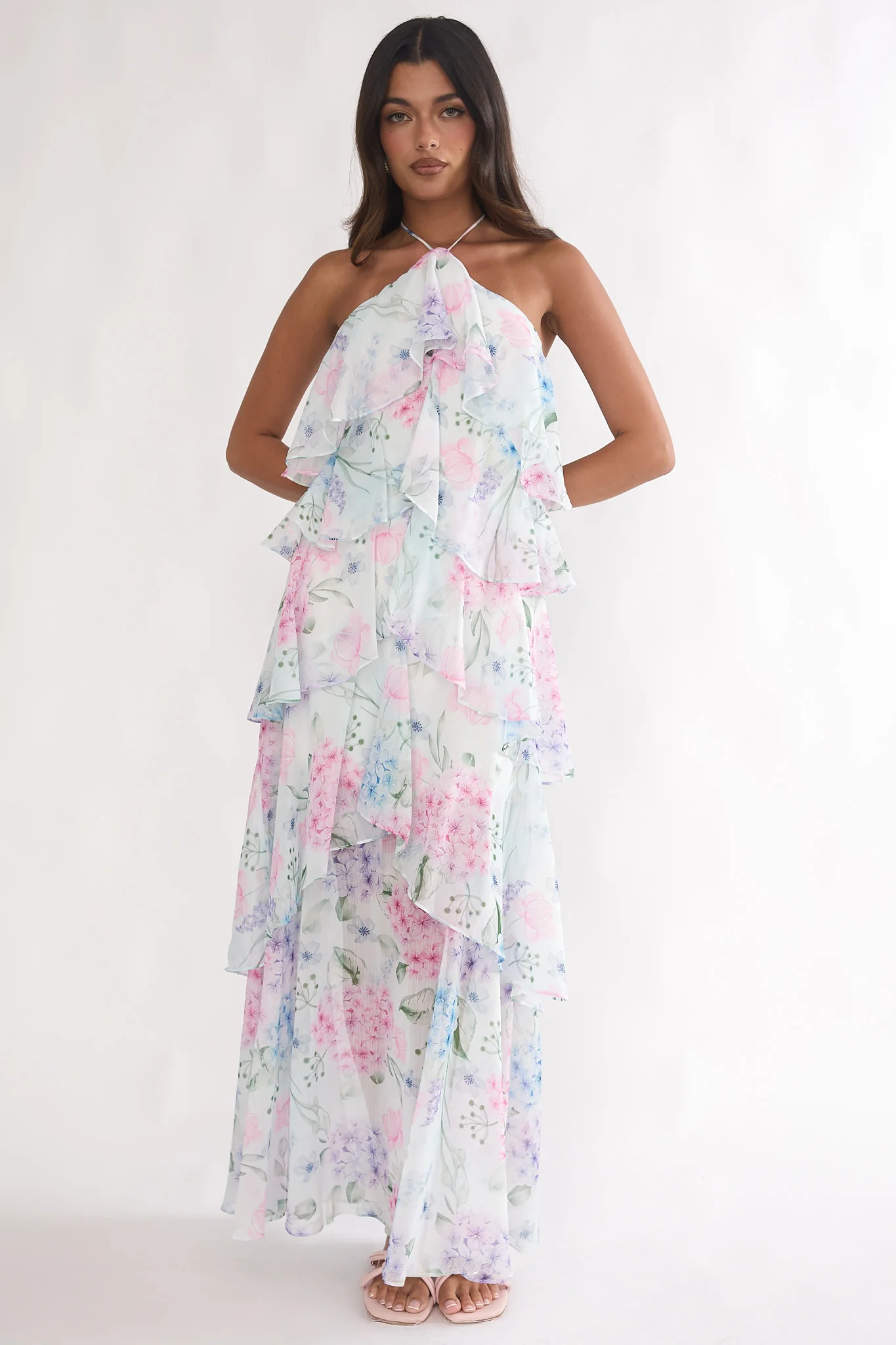 Darylyn Tiered Ruffle Maxi Dress Floral Pink