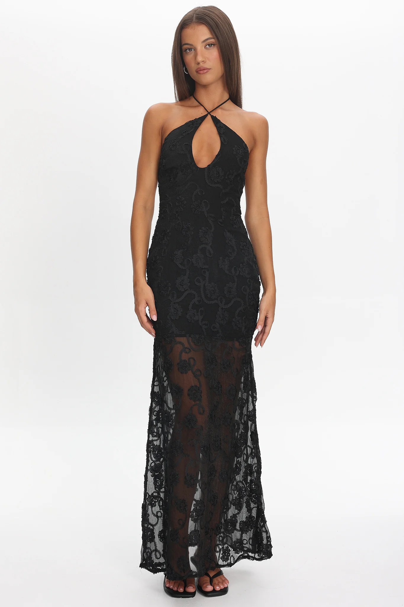 Lylah Asymmetric Neckline Mesh Maxi Dress Black