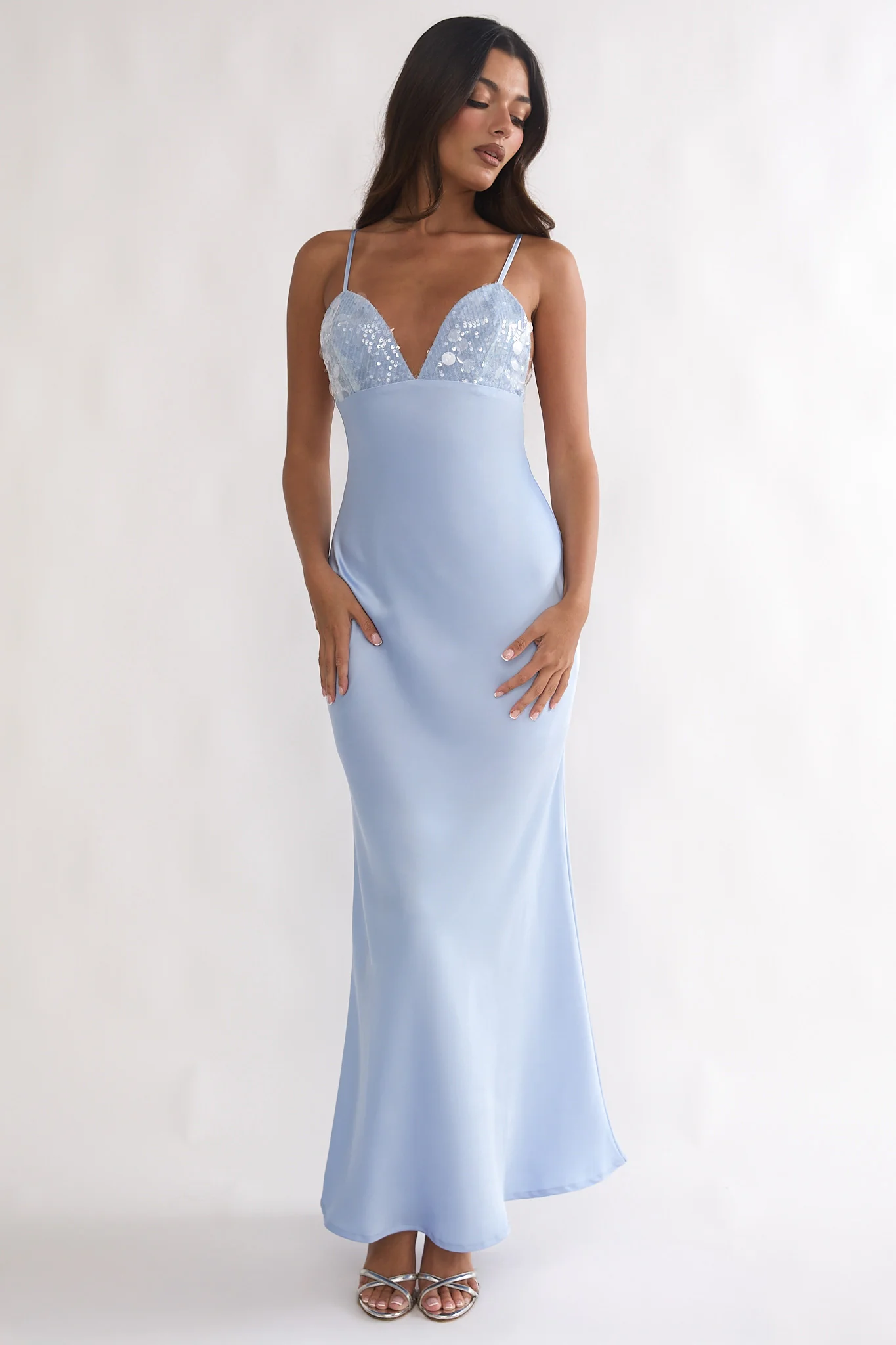 Brynn Sequin Bust Open Back Maxi Dress Blue