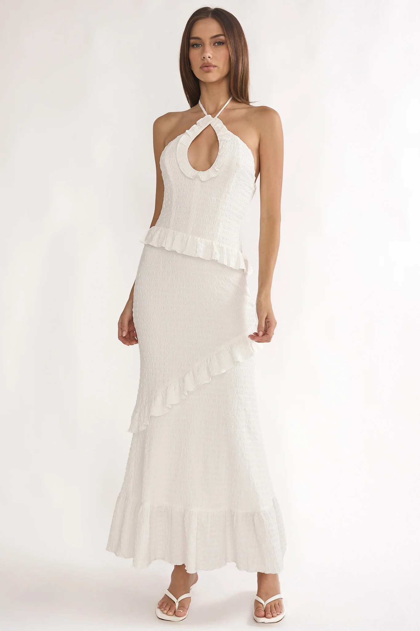 Dena One-Shoulder Frill Hem Maxi Dress White
