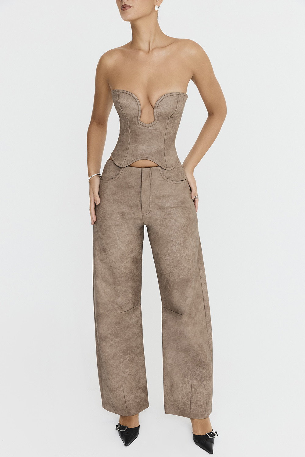 RivieraMistress Rocks Beige Low Rise Vegan Leather Trousers - SALE
