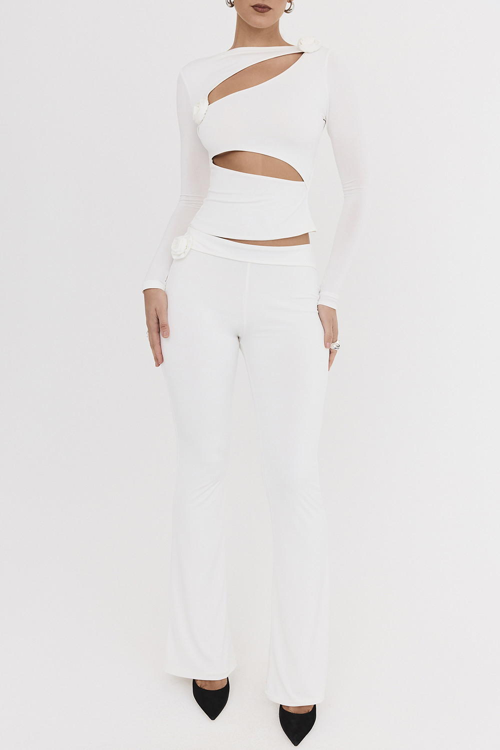 Mistress Rocks Ivory Flower Embellished Trousers - SALE