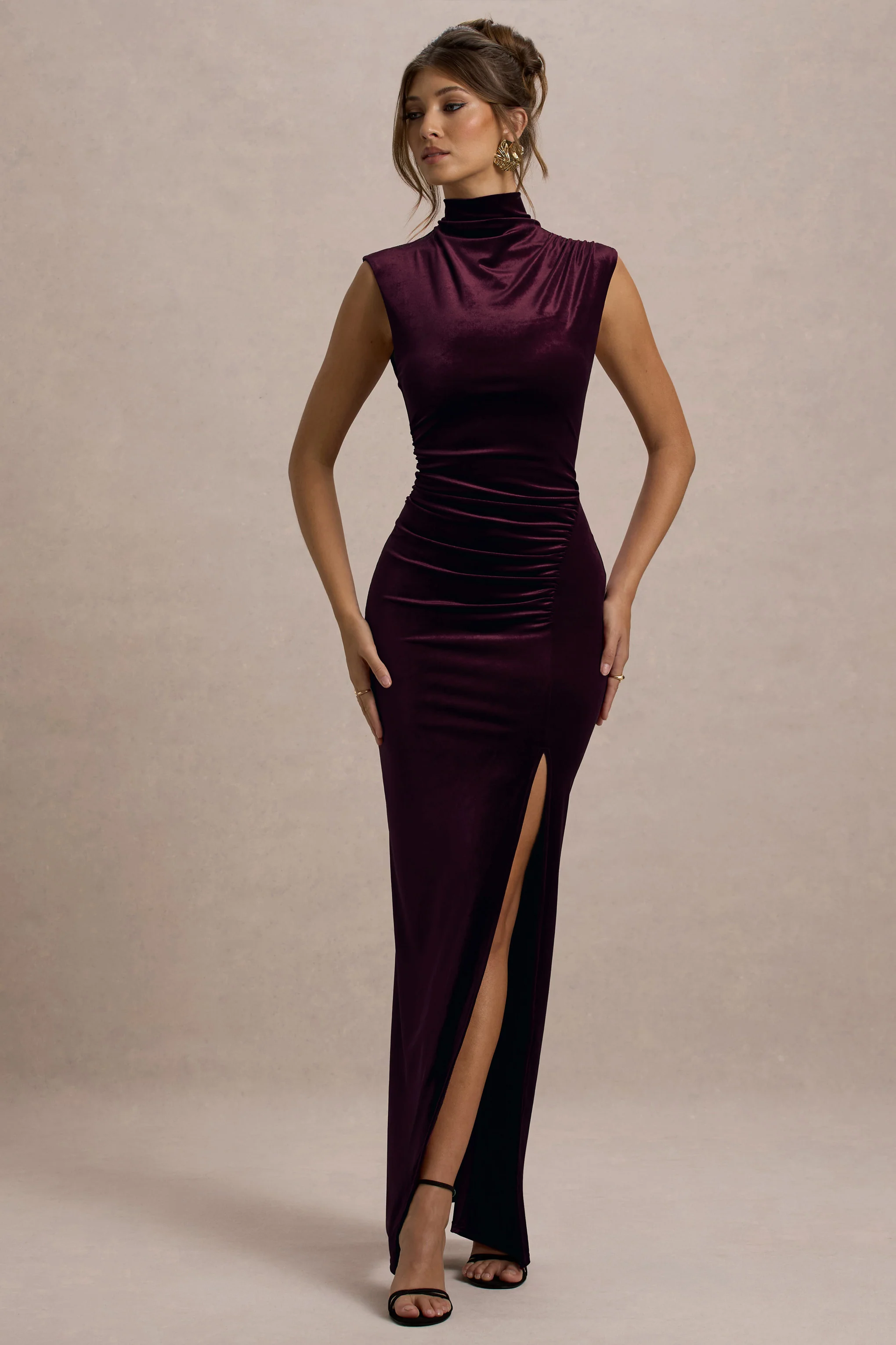 Abilene | Port Velvet High-Neck Split Maxi Dress