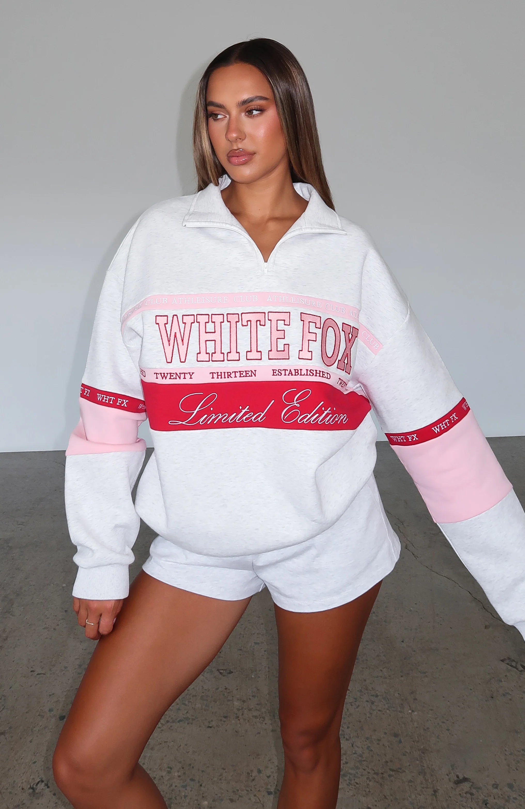Get the studio to street look in our Breaking Ground Zip Front Sweater Grey Marle. Features an oversized fit, zip front, ribbed hemline and cuffs, puff print logo front centre and fleece lined. Complete the look with one of our cosy lounge shorts for the full vibe!