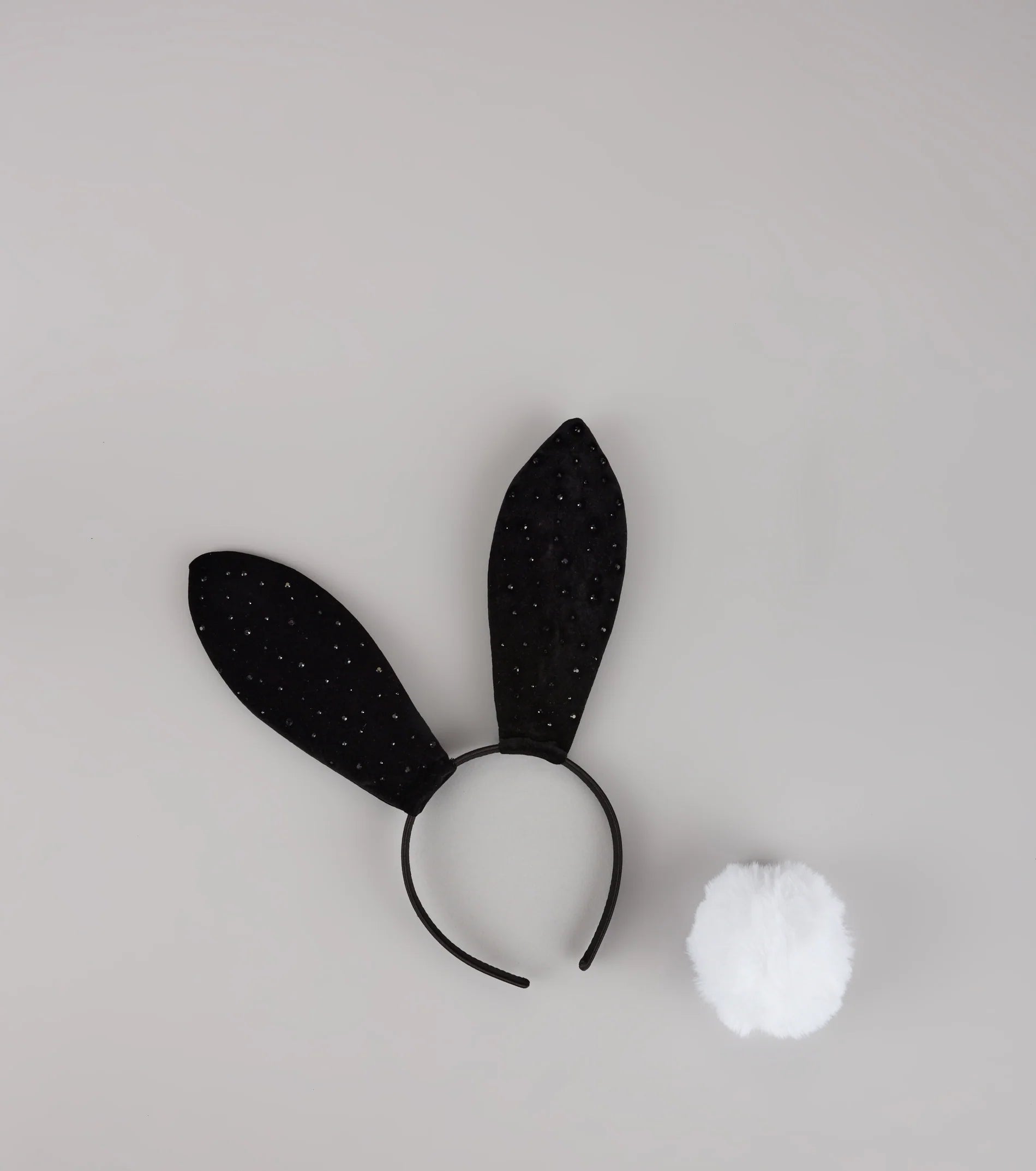 Serving iconic bunny vibes with a luxe twist—this bunny ear and tail set will complete your irresistible look. Perfect for Halloween costume parties and themed nights!