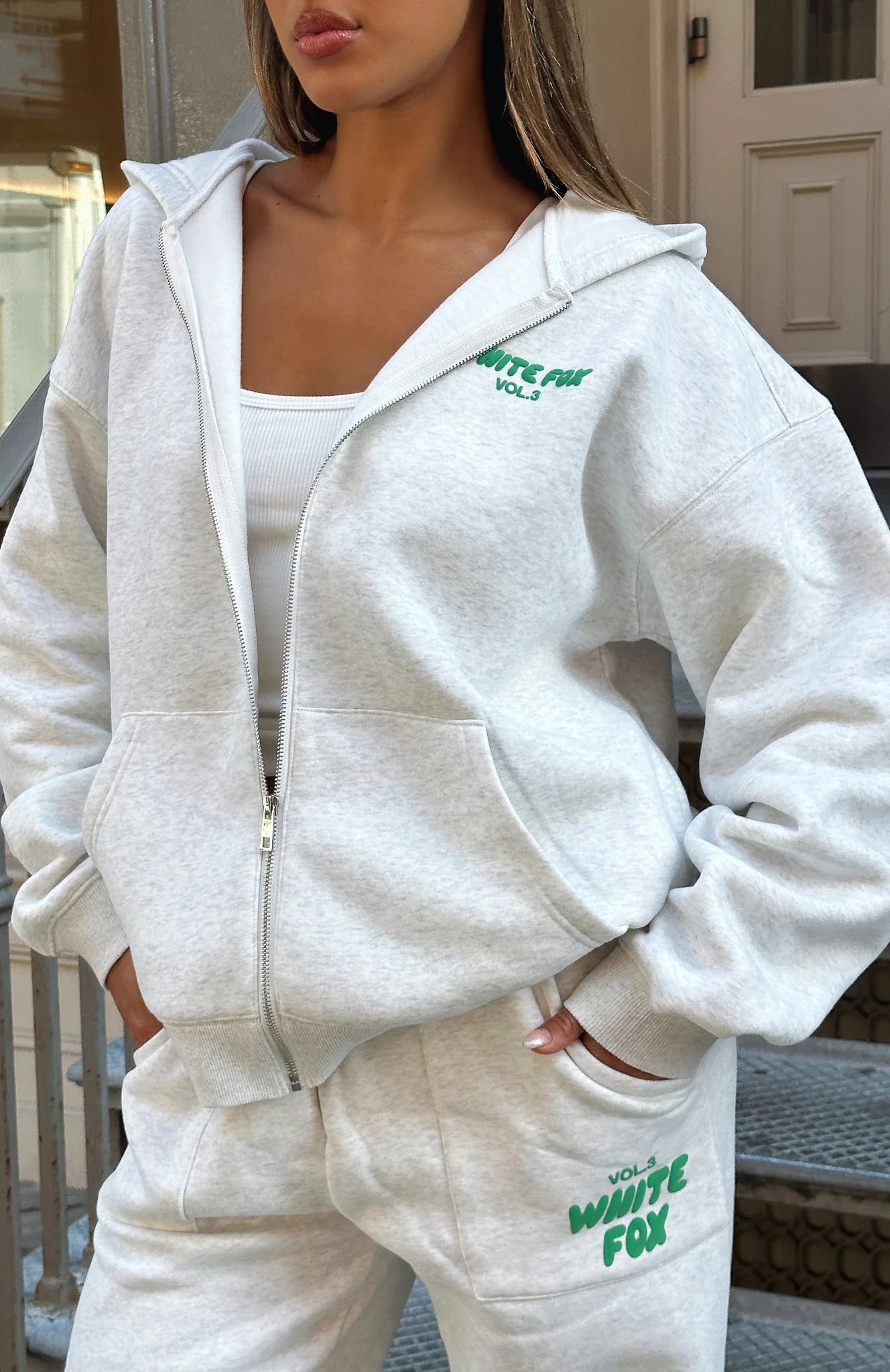 Whether you're lounging at home or out and about, this hoodie is a must-have staple! The Offstage Zip Front Hoodie Glacier Grey features elasticated ribbed cuffs & hem, hood, zip-up front, soft fleece fabric for extra comfort, puff print logo side front and centre back and soft fleece lining for ultimate comfort. Team with the the matching Offstage Sweatpants for the ultimate cool girl vibe!