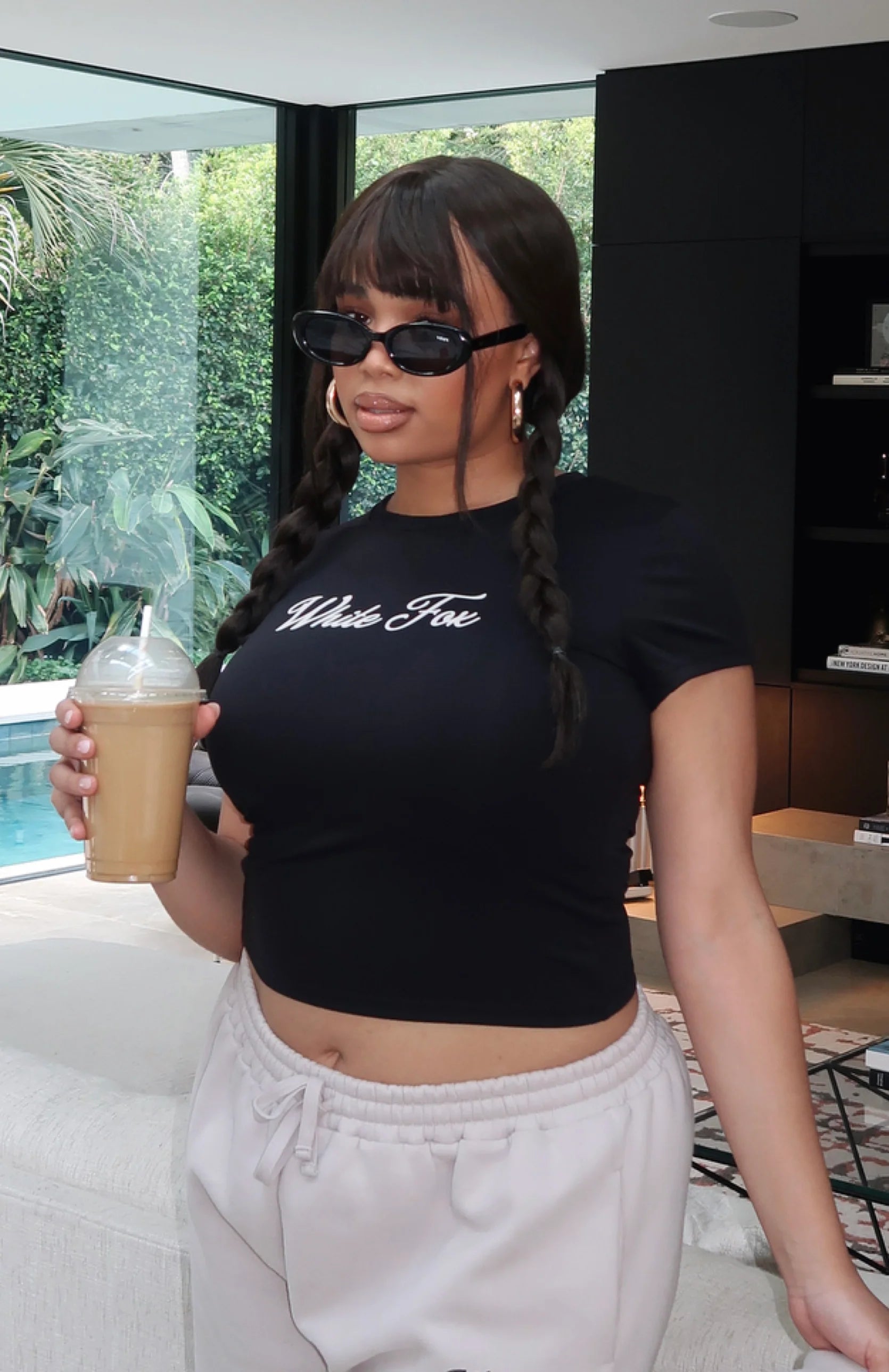 Stay snug in the Season 7 Baby Tee Jet. Featuring a high scooped neckline, short sleeves and printed logo centre front. Pair with one of the matching Season 7 Lounge Sets for a cosy look!